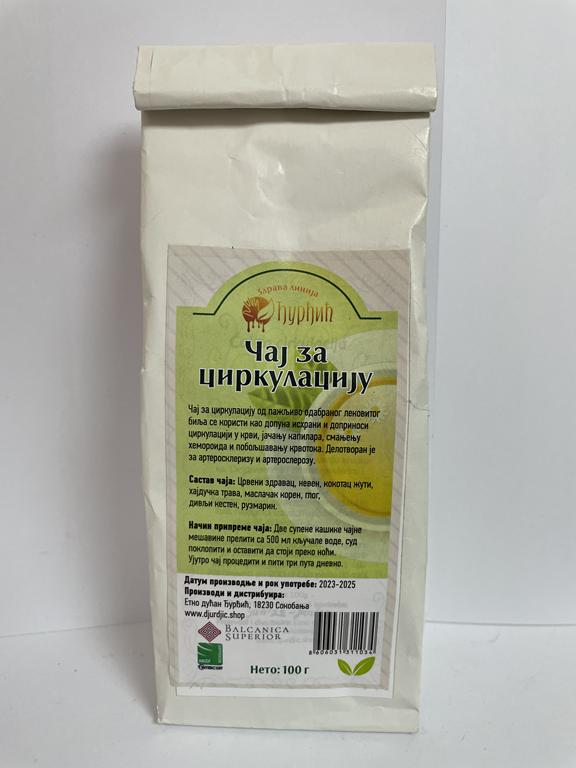 Чај за циркулацију од пажљиво одабраног лека користи се као допуна исхране и доприноси циркулацији у крви, јачању капилара, смањењу хемороида и побољшању. Делотворан је за артеросклеризу и артерослерозу.